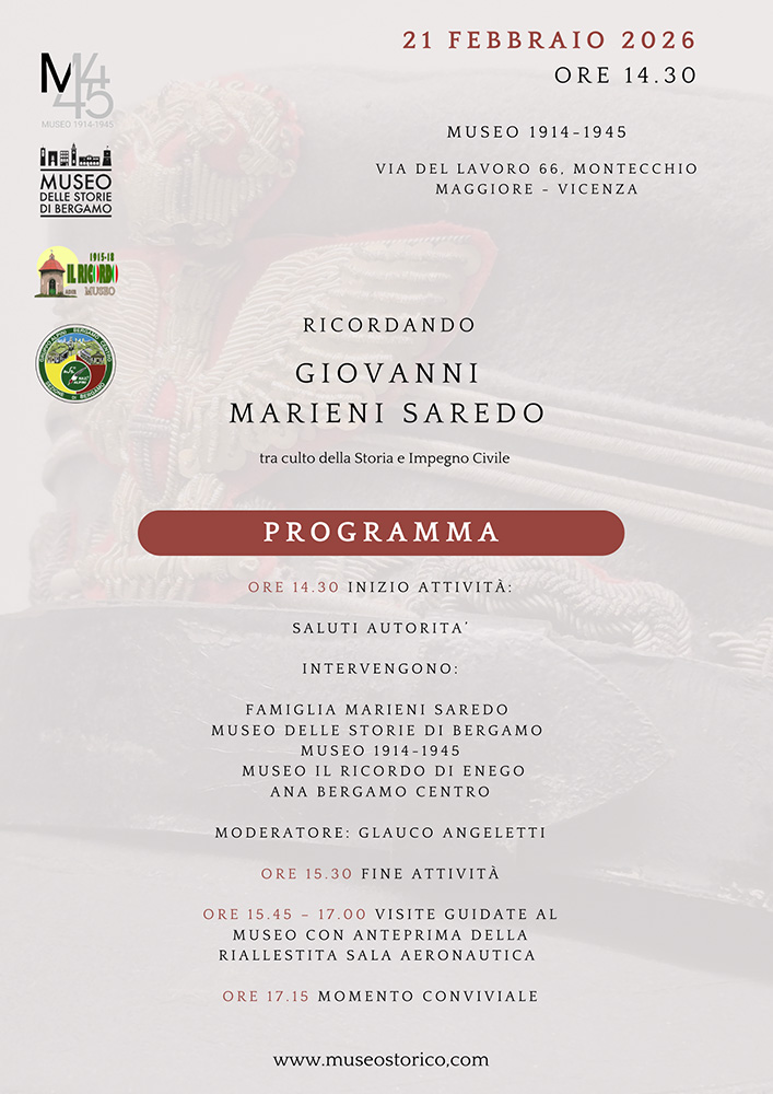 La giornata “Ricordando Giovanni Marieni Saredo” intende quindi delineare il ricordo di un gentiluomo mosso dal grande amore e rispetto per la Storia esprimendo al contempo la sincera riconoscenza del Museo 1914-1945.